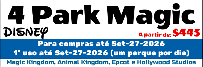 D580 - 4 Dias Base Disney Flexível ( Sem data com validade ate 2030) - (1 Parque por dia a sua escolha) (Magic Kingdom, Epcot, Hollywood Studios e Animal Kingdom (É necessário agendamento) (Ticket Físico, retirar em nosso escritório) - (Para uso dentro de 14 Dias)